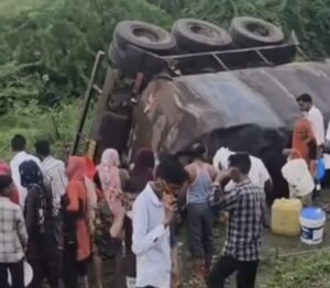 देवली के टीकड़ गांव के पास बुधवार दोपहर निवाई से कोटा जा रहा मूंगफली तेल से भरा टैंकर गायत्री विहार कॉलोनी के पास अनियंत्रित होकर पलट गया।
