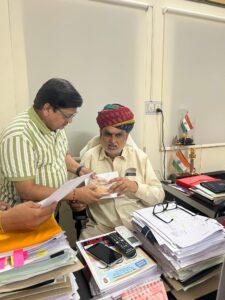 शहरी विकास मंत्री श्री झाबर सिंह खर्रा से उनके सरकारी आवास पर ओ पी पुरोहित ने , एहसास चैरिटेबल ट्रस्ट की ओर से, उन्हें आगामी 13 सितंबर को ग्लोबल इंस्टीट्यूट ऑफ टेक्नोलॉजी, जयपुर में आयोजित होने वाले “संस्कार से स्वाभिमान तक :: भारत गौरव पुरस्कार” कार्यक्रम में मुख्य अतिथि के रूप में सादर आमंत्रित किया गया।